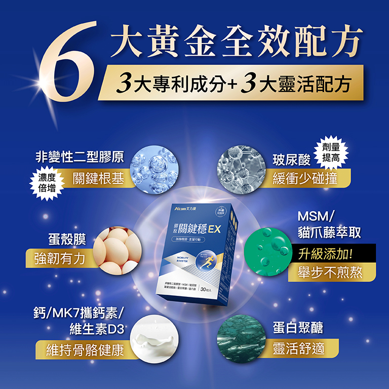 ✦ 美國專利【UCII(非變性II型原蛋白)】可調節機能