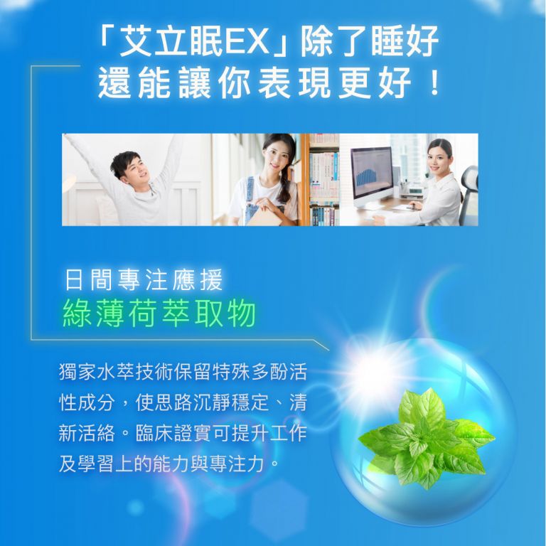 ✦ 『艾立眠EX』除了睡好,還能讓你表現更好!